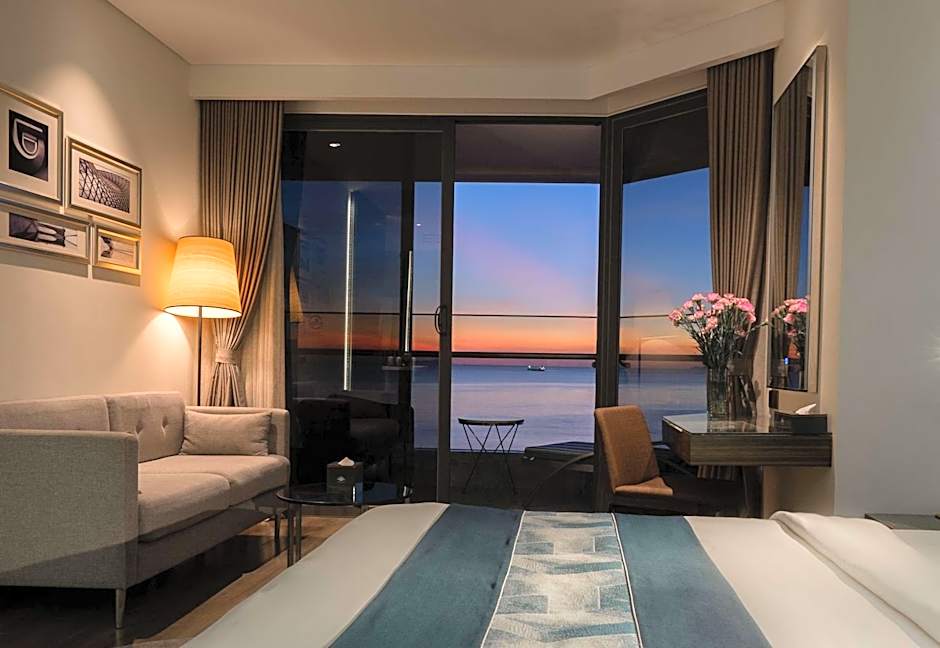 This larger air-conditioned deluxe double room features a private balcony that opens up to views of the sea. It is fitted with a flat-screen cable TV, mini-bar and a desk. The private bathroom includes shower facilities, a hairdryer and free toiletries.